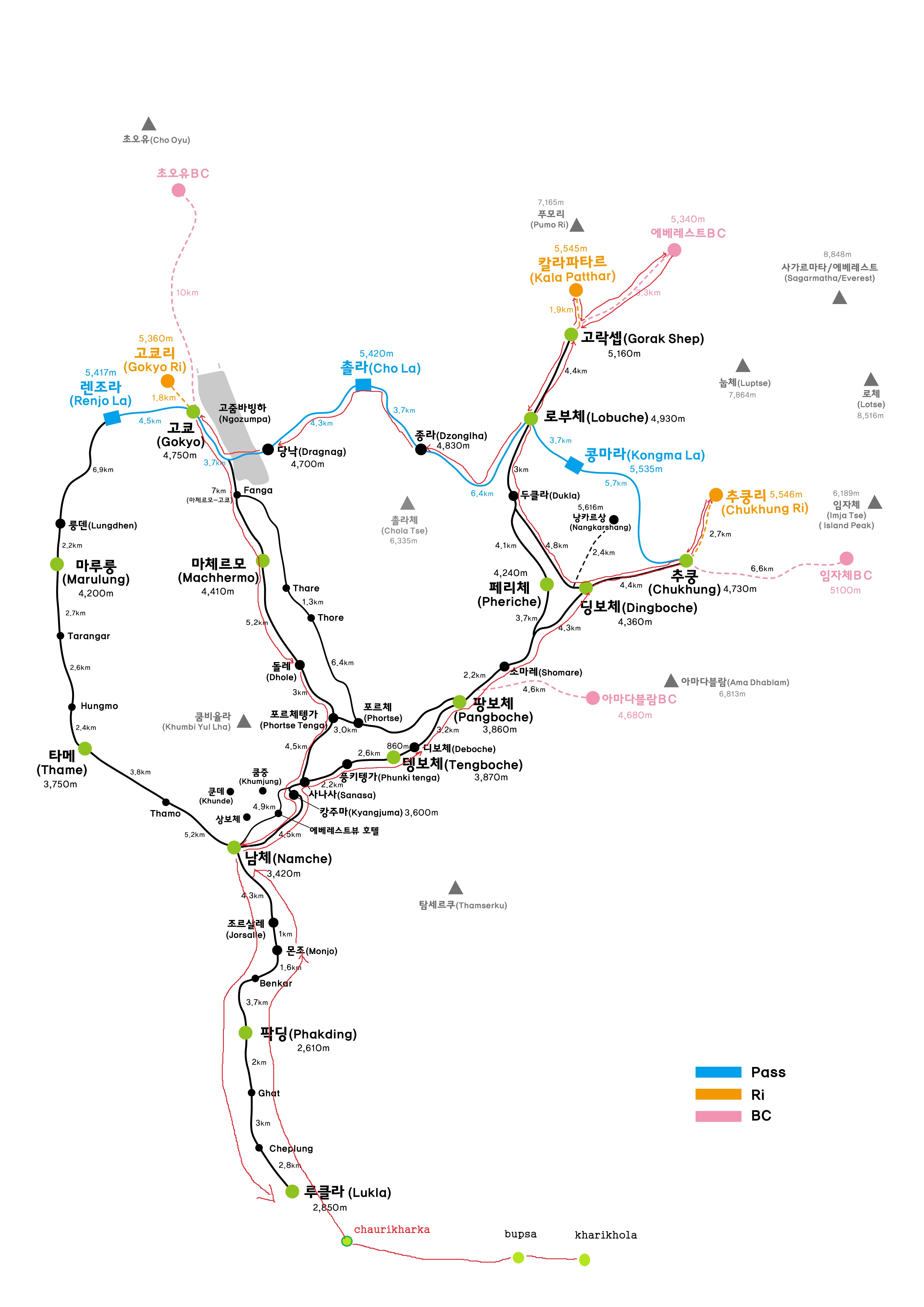 걸어서 갈때는 루쿨라를 거치지 않고 sukre에서 chaurikaharka 거쳐 chheplung 으로 진행 합니다.